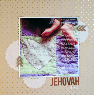This is a layout I made regarding our decision to have me become a stay at home mom and leave my job of 9 years! It was a "tough" decision, well, not really once we were given the hearts to do so! I had posted this photo to my Instagram (minus the journaling). Jehovah-Jireh means "The Lord Will Provide" :)